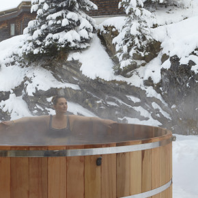At the Spa des Dromonts, you can enjoy the great classics of well-being. The style of the Spa at the Hôtel des Dromonts pays homage to the classics of the Avoriaz resort: noble materials such as wooden tavaillons (small tiles) and slate. The wellness area is enveloped in tavaillon walls, in the spirit of the building's "façade-roof", but painted white to evoke the surrounding snow. In contrast, the floors are clad in slate, the resort's emblematic stone, and to add a touch of light, the relaxation area is adorned with mirrors, as if straight out of a James Bond movie...